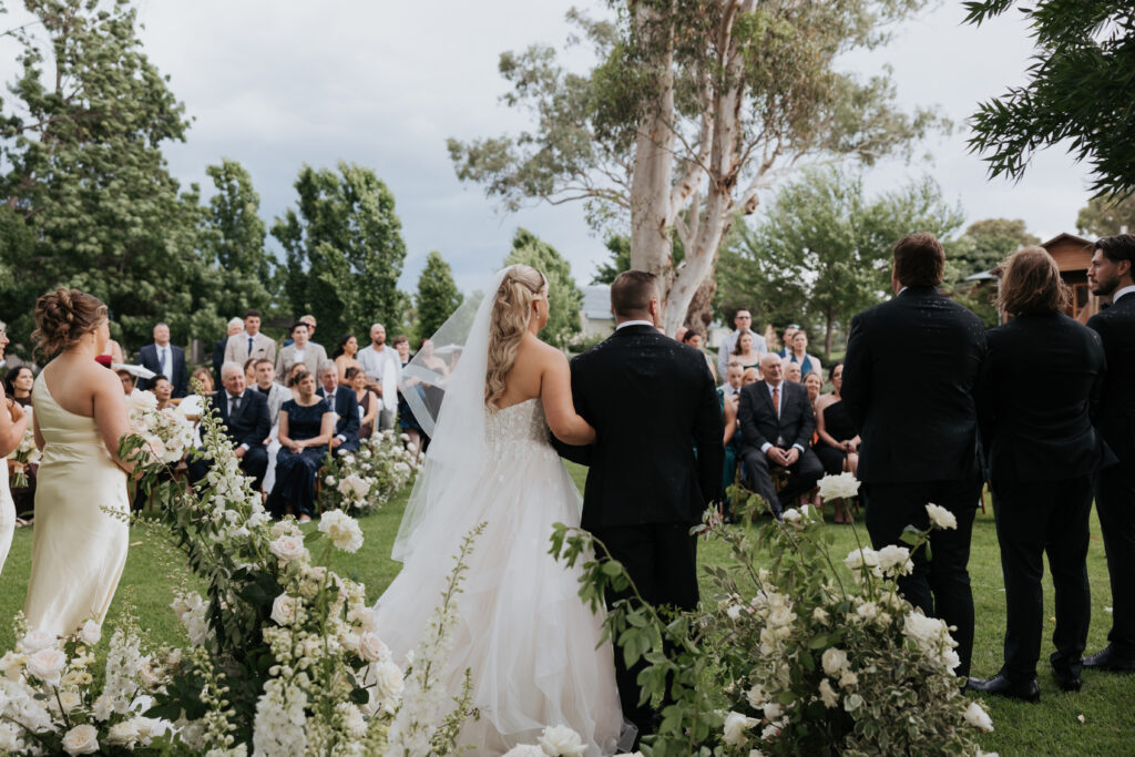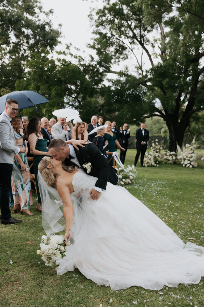 The ceremony went ahead, heartfelt and beautiful, with Cassandra and Brad exchanging their vows just as the first raindrops began to fall. Then, as if on cue, the heavens opened. For 30 full minutes, it was complete mayhem—umbrellas flipping, people running for cover, the kind of storm that becomes a wedding-day legend.